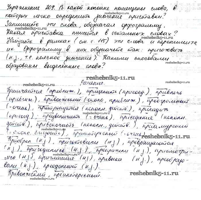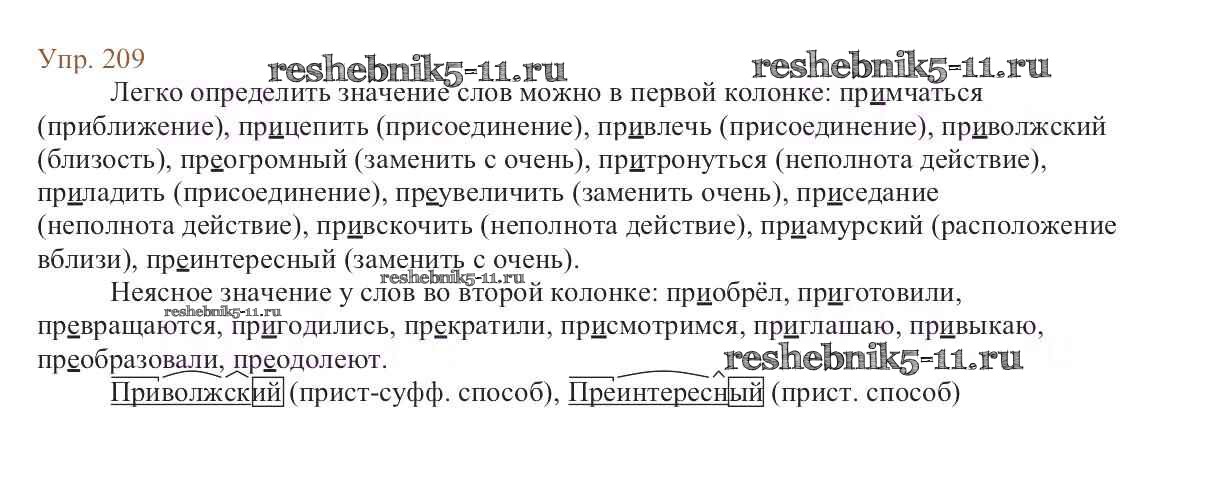 Готовая домашняя работа с ответами по Русскому языку за 6 класс Баранов, Ладыженская, Тростенцова, Григорян, Кулибаба Учебник Часть 1, 2 Просвещение 2015 ФГОС - Упражнения 209