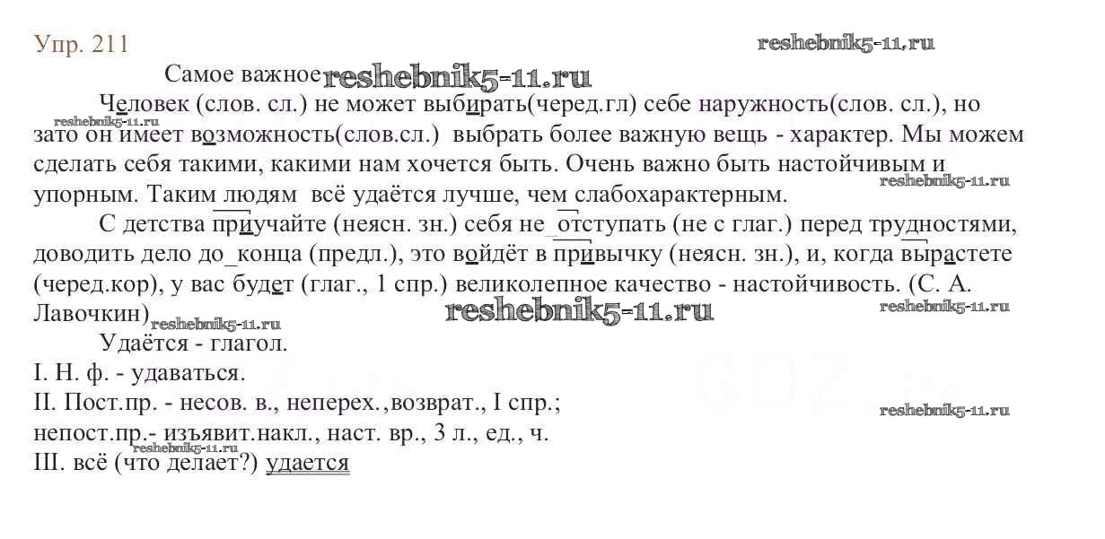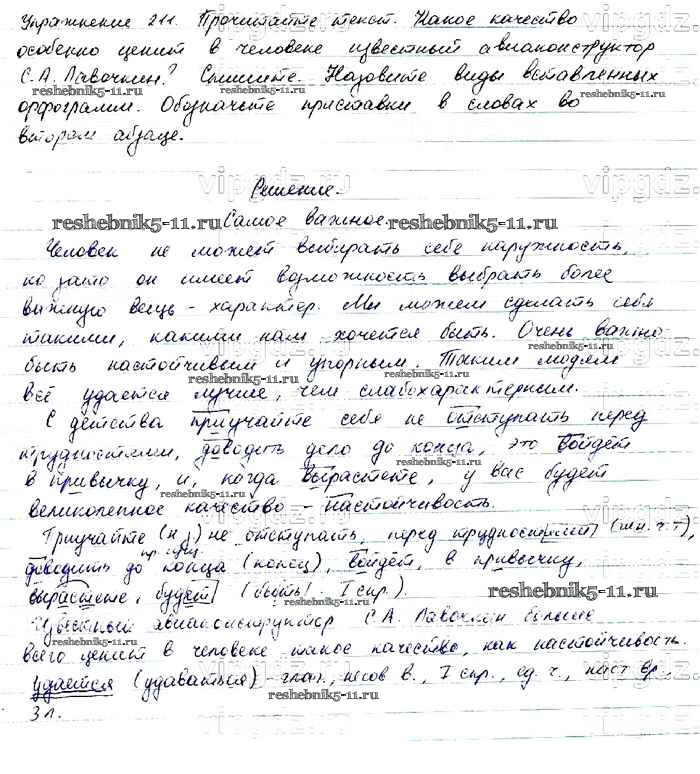 Готовая домашняя работа с ответами по Русскому языку за 6 класс Баранов, Ладыженская, Тростенцова, Григорян, Кулибаба Учебник Часть 1, 2 Просвещение 2015 ФГОС - Упражнения 211