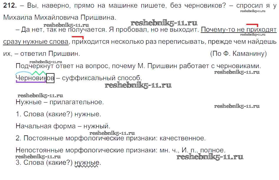 Готовая домашняя работа с ответами по Русскому языку за 6 класс Баранов, Ладыженская, Тростенцова, Григорян, Кулибаба Учебник Часть 1, 2 Просвещение 2015 ФГОС - Упражнения 212