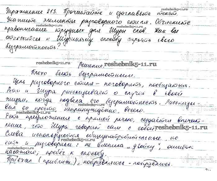 Русский язык за 6 класс Баранов Учебник Просвещение упражнение 213