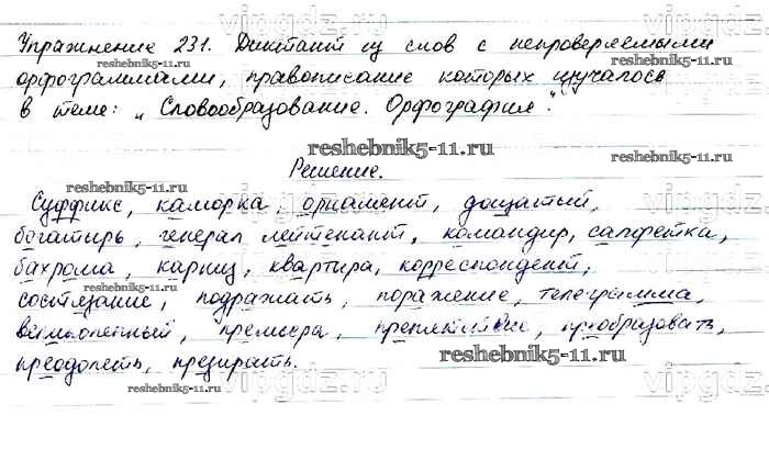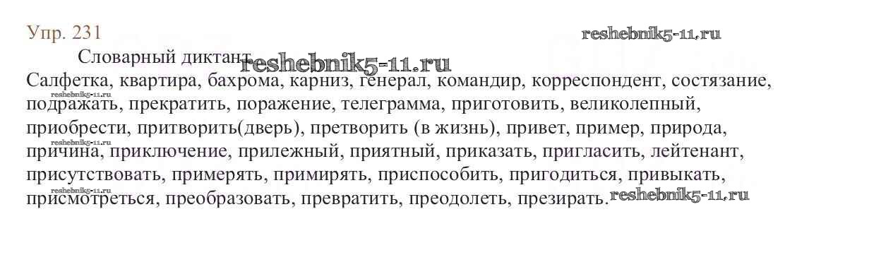 Готовая домашняя работа с ответами по Русскому языку за 6 класс Баранов, Ладыженская, Тростенцова, Григорян, Кулибаба Учебник Часть 1, 2 Просвещение 2015 ФГОС - Упражнения 231