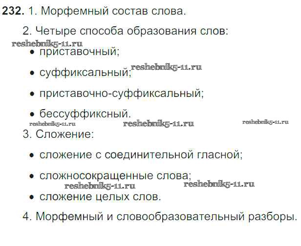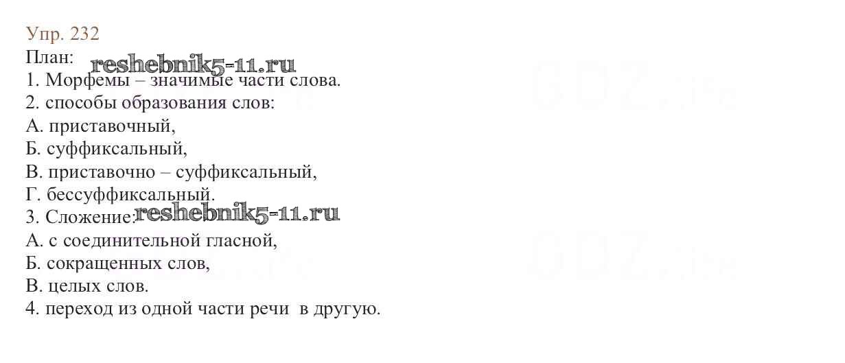 Готовая домашняя работа с ответами по Русскому языку за 6 класс Баранов, Ладыженская, Тростенцова, Григорян, Кулибаба Учебник Часть 1, 2 Просвещение 2015 ФГОС - Упражнения 232