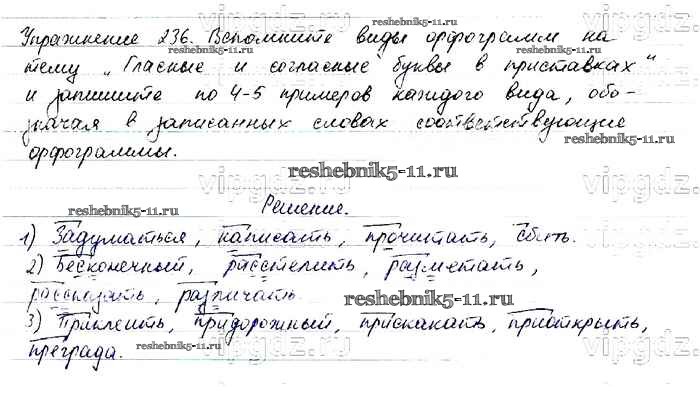 Готовая домашняя работа с ответами по Русскому языку за 6 класс Баранов, Ладыженская, Тростенцова, Григорян, Кулибаба Учебник Часть 1, 2 Просвещение 2015 ФГОС - Упражнения 236