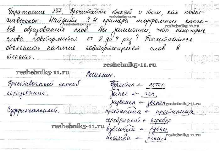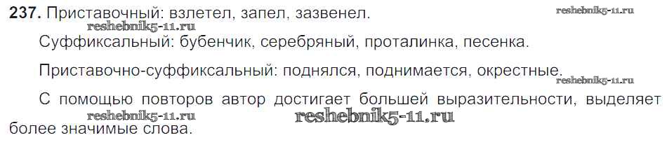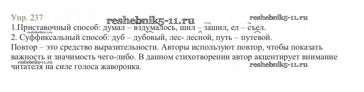 Готовая домашняя работа с ответами по Русскому языку за 6 класс Баранов, Ладыженская, Тростенцова, Григорян, Кулибаба Учебник Часть 1, 2 Просвещение 2015 ФГОС - Упражнения 237