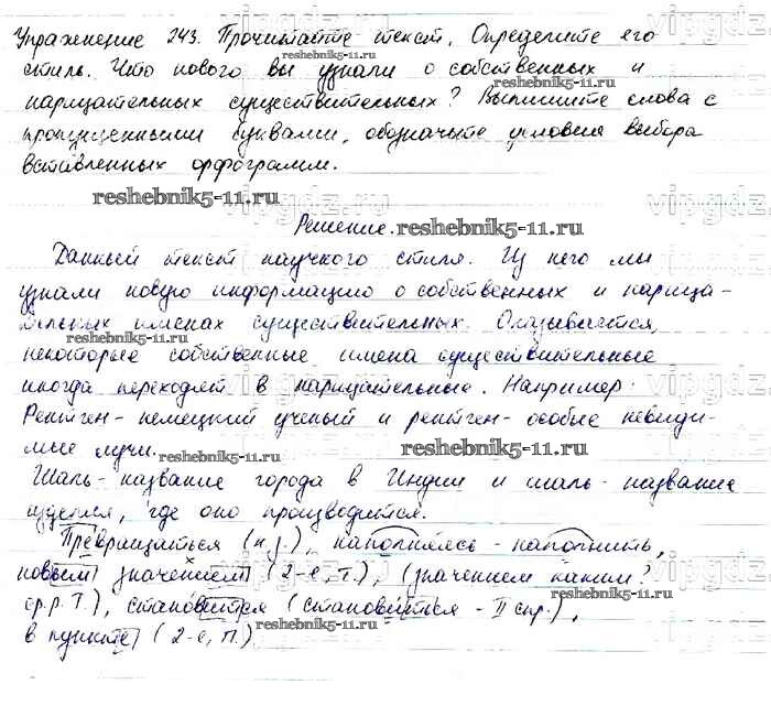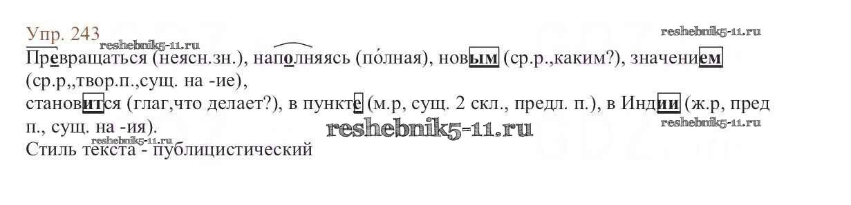 Готовая домашняя работа с ответами по Русскому языку за 6 класс Баранов, Ладыженская, Тростенцова, Григорян, Кулибаба Учебник Часть 1, 2 Просвещение 2015 ФГОС - Упражнения 243