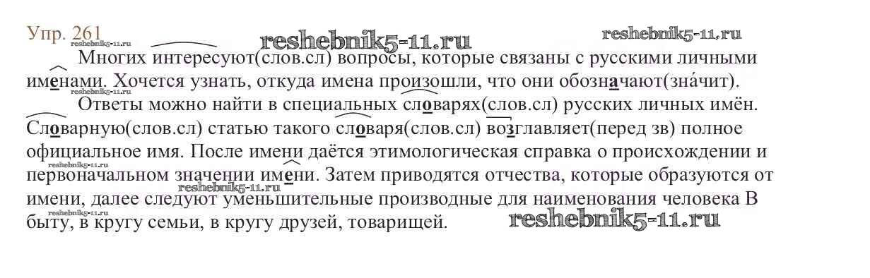 Русский язык за 6 класс Баранов Учебник Просвещение упражнение 261
