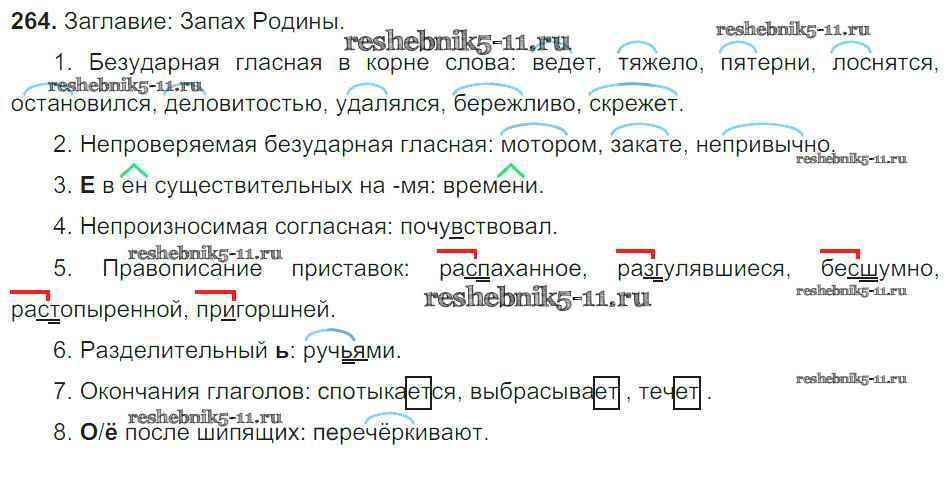 Готовая домашняя работа с ответами по Русскому языку за 6 класс Баранов, Ладыженская, Тростенцова, Григорян, Кулибаба Учебник Часть 1, 2 Просвещение 2015 ФГОС - Упражнения 264