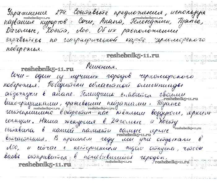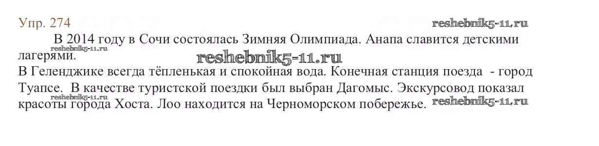 Готовая домашняя работа с ответами по Русскому языку за 6 класс Баранов, Ладыженская, Тростенцова, Григорян, Кулибаба Учебник Часть 1, 2 Просвещение 2015 ФГОС - Упражнения 274