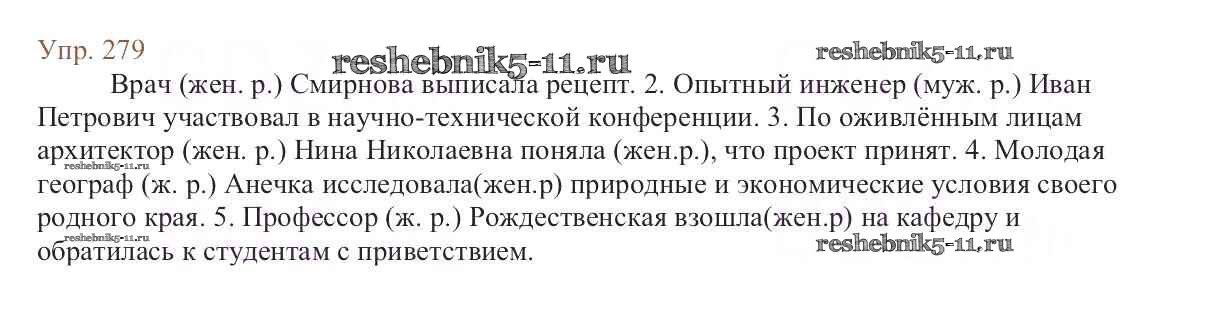 Русский язык за 6 класс Баранов Учебник Просвещение упражнение 279