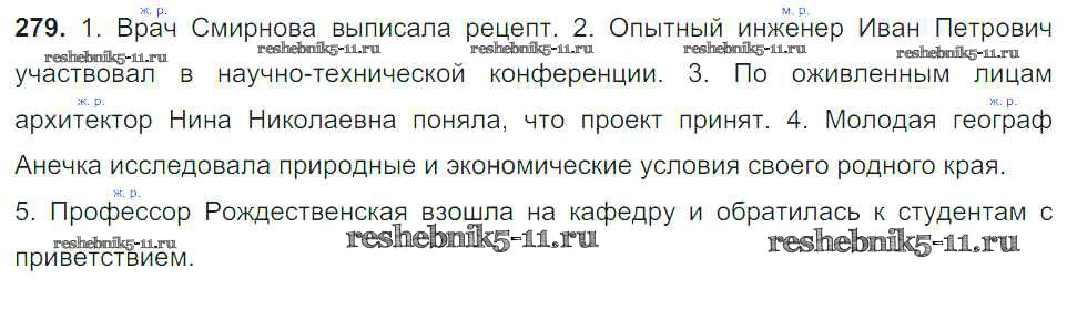Готовая домашняя работа с ответами по Русскому языку за 6 класс Баранов, Ладыженская, Тростенцова, Григорян, Кулибаба Учебник Часть 1, 2 Просвещение 2015 ФГОС - Упражнения 279