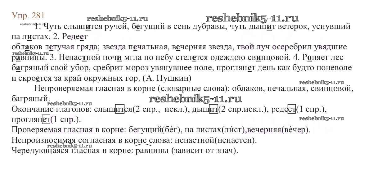 Готовая домашняя работа с ответами по Русскому языку за 6 класс Баранов, Ладыженская, Тростенцова, Григорян, Кулибаба Учебник Часть 1, 2 Просвещение 2015 ФГОС - Упражнения 281