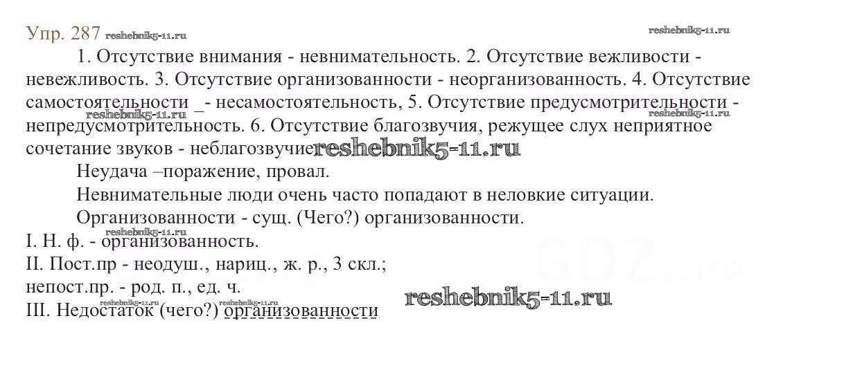 Готовая домашняя работа с ответами по Русскому языку за 6 класс Баранов, Ладыженская, Тростенцова, Григорян, Кулибаба Учебник Часть 1, 2 Просвещение 2015 ФГОС - Упражнения 287