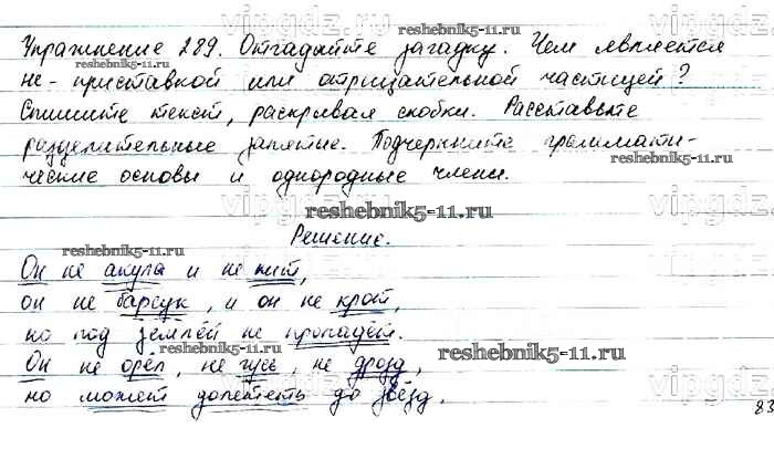 Готовая домашняя работа с ответами по Русскому языку за 6 класс Баранов, Ладыженская, Тростенцова, Григорян, Кулибаба Учебник Часть 1, 2 Просвещение 2015 ФГОС - Упражнения 289