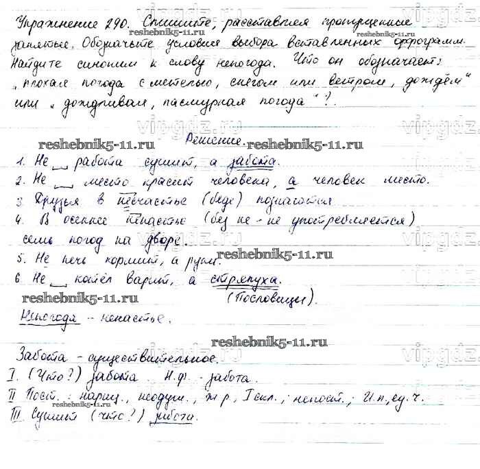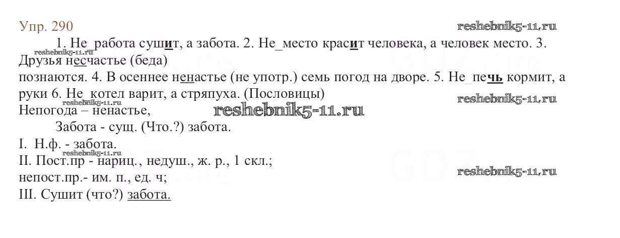 Готовая домашняя работа с ответами по Русскому языку за 6 класс Баранов, Ладыженская, Тростенцова, Григорян, Кулибаба Учебник Часть 1, 2 Просвещение 2015 ФГОС - Упражнения 290