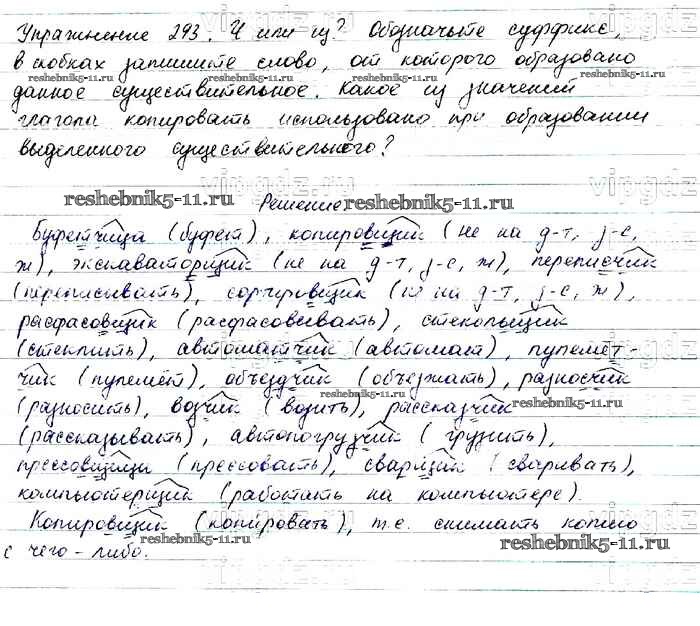 Готовая домашняя работа с ответами по Русскому языку за 6 класс Баранов, Ладыженская, Тростенцова, Григорян, Кулибаба Учебник Часть 1, 2 Просвещение 2015 ФГОС - Упражнения 293