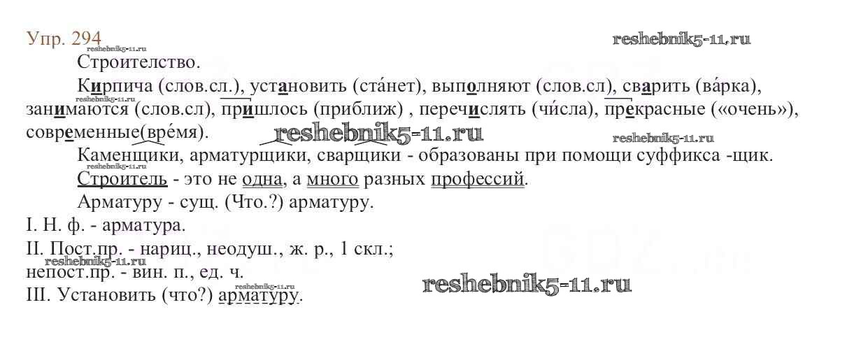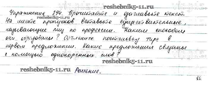 Готовая домашняя работа с ответами по Русскому языку за 6 класс Баранов, Ладыженская, Тростенцова, Григорян, Кулибаба Учебник Часть 1, 2 Просвещение 2015 ФГОС - Упражнения 294