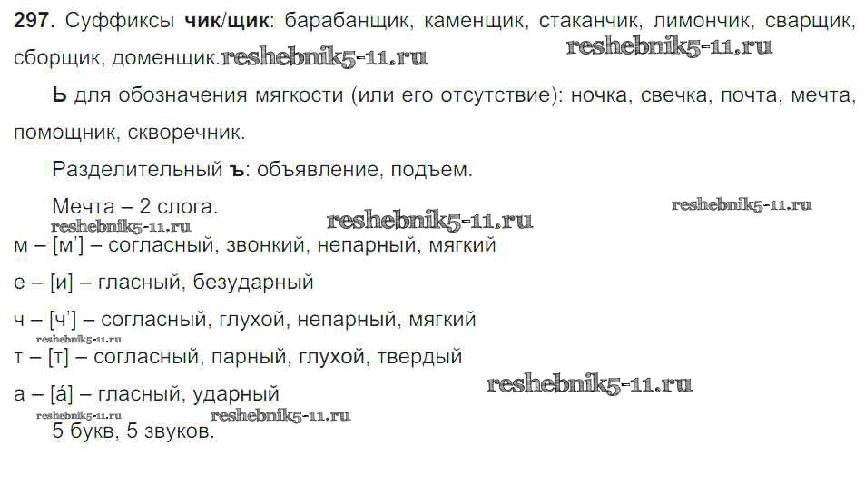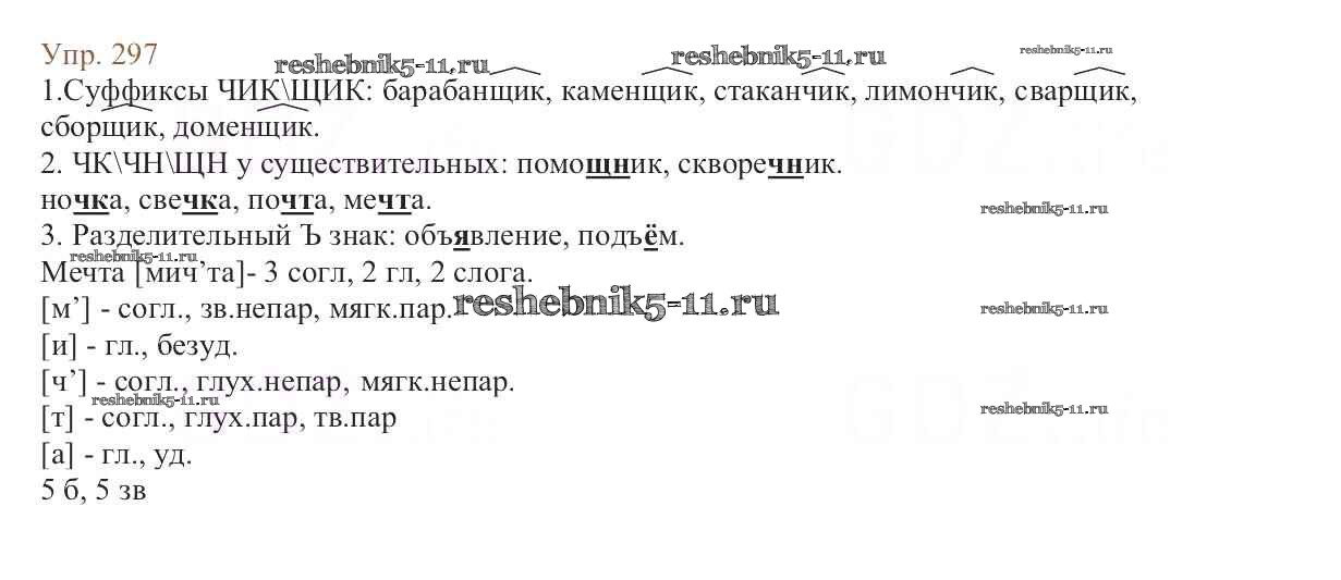 Готовая домашняя работа с ответами по Русскому языку за 6 класс Баранов, Ладыженская, Тростенцова, Григорян, Кулибаба Учебник Часть 1, 2 Просвещение 2015 ФГОС - Упражнения 297