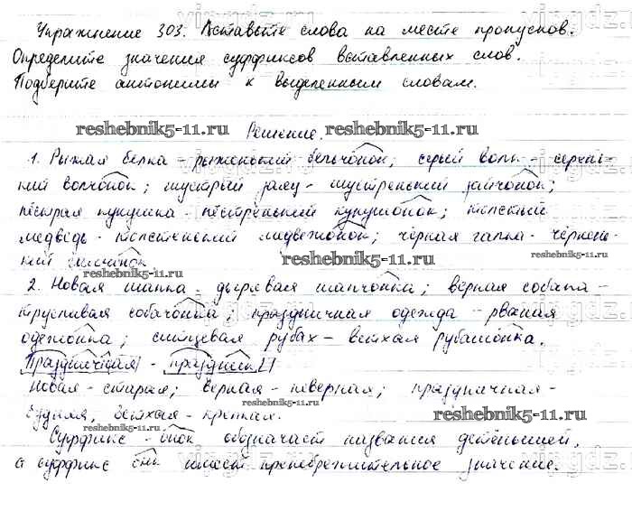 Готовая домашняя работа с ответами по Русскому языку за 6 класс Баранов, Ладыженская, Тростенцова, Григорян, Кулибаба Учебник Часть 1, 2 Просвещение 2015 ФГОС - Упражнения 303
