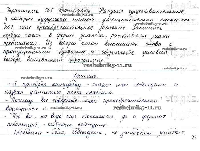 Готовая домашняя работа с ответами по Русскому языку за 6 класс Баранов, Ладыженская, Тростенцова, Григорян, Кулибаба Учебник Часть 1, 2 Просвещение 2015 ФГОС - Упражнения 305