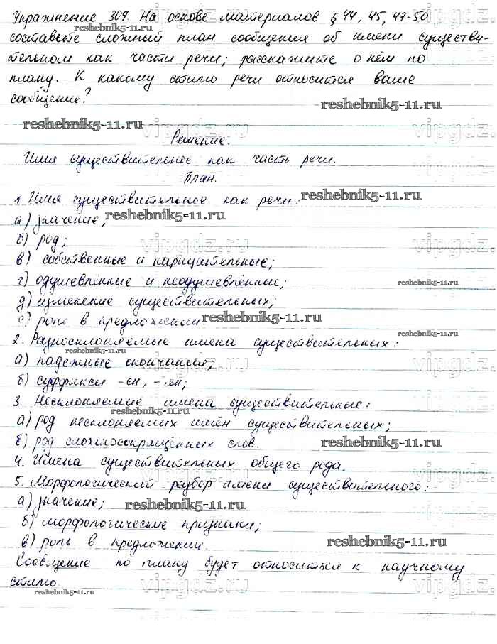Готовая домашняя работа с ответами по Русскому языку за 6 класс Баранов, Ладыженская, Тростенцова, Григорян, Кулибаба Учебник Часть 1, 2 Просвещение 2015 ФГОС - Упражнения 309