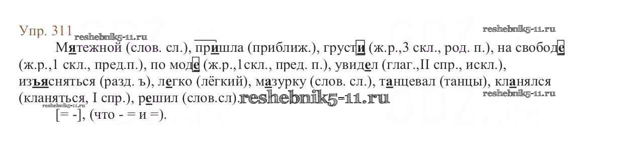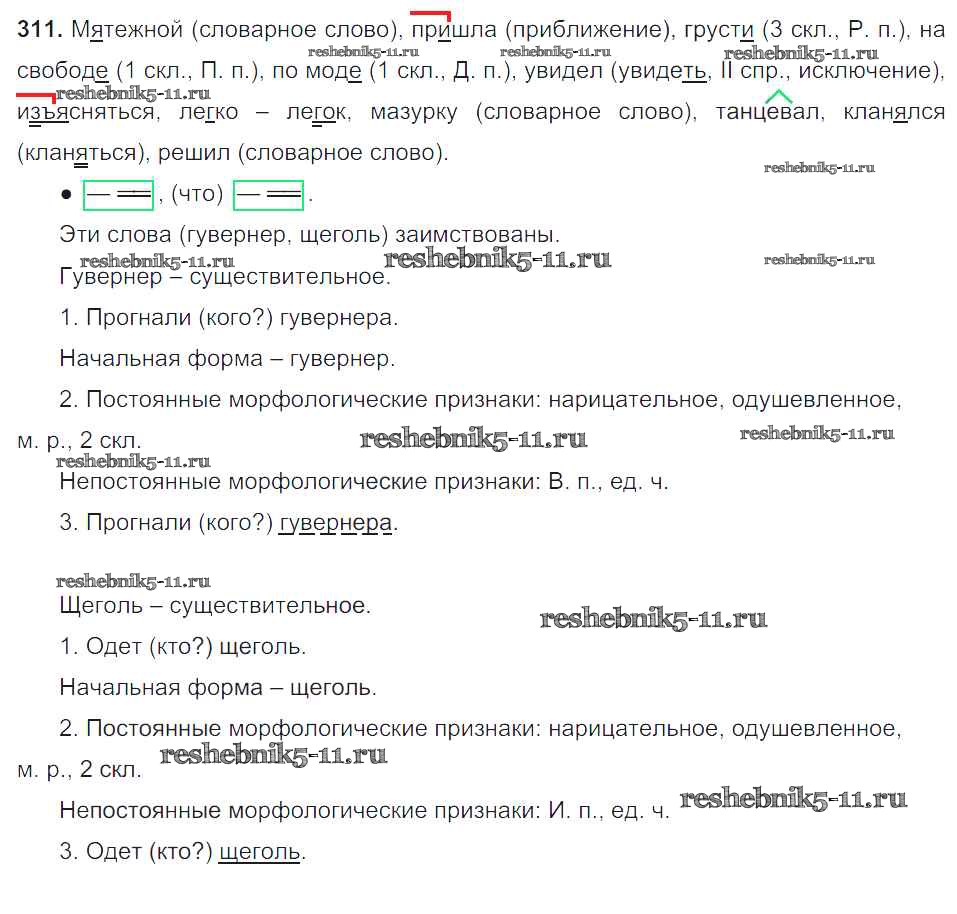 Готовая домашняя работа с ответами по Русскому языку за 6 класс Баранов, Ладыженская, Тростенцова, Григорян, Кулибаба Учебник Часть 1, 2 Просвещение 2015 ФГОС - Упражнения 311