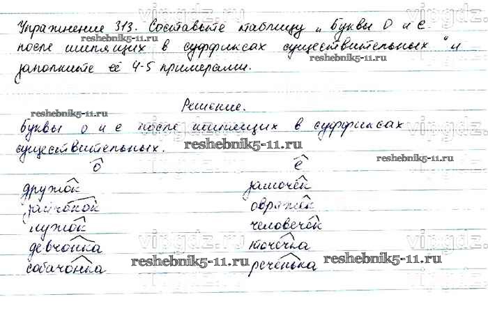 Готовая домашняя работа с ответами по Русскому языку за 6 класс Баранов, Ладыженская, Тростенцова, Григорян, Кулибаба Учебник Часть 1, 2 Просвещение 2015 ФГОС - Упражнения 313