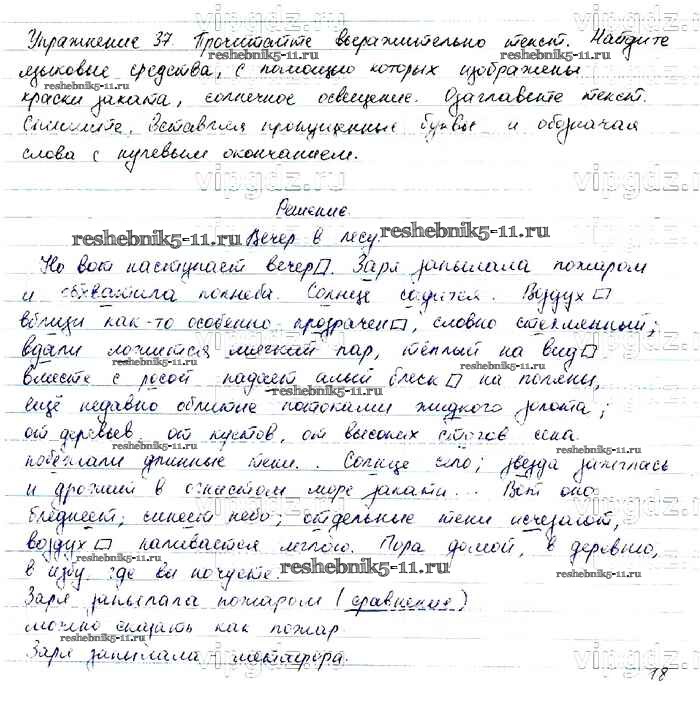 Готовая домашняя работа с ответами по Русскому языку за 6 класс Баранов, Ладыженская, Тростенцова, Григорян, Кулибаба Учебник Часть 1, 2 Просвещение 2015 ФГОС - Упражнения 37