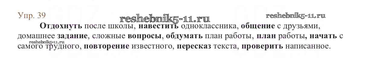 Русский язык за 6 класс Баранов Учебник Просвещение упражнение 39