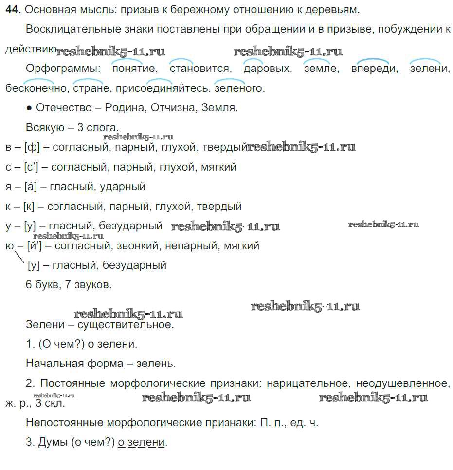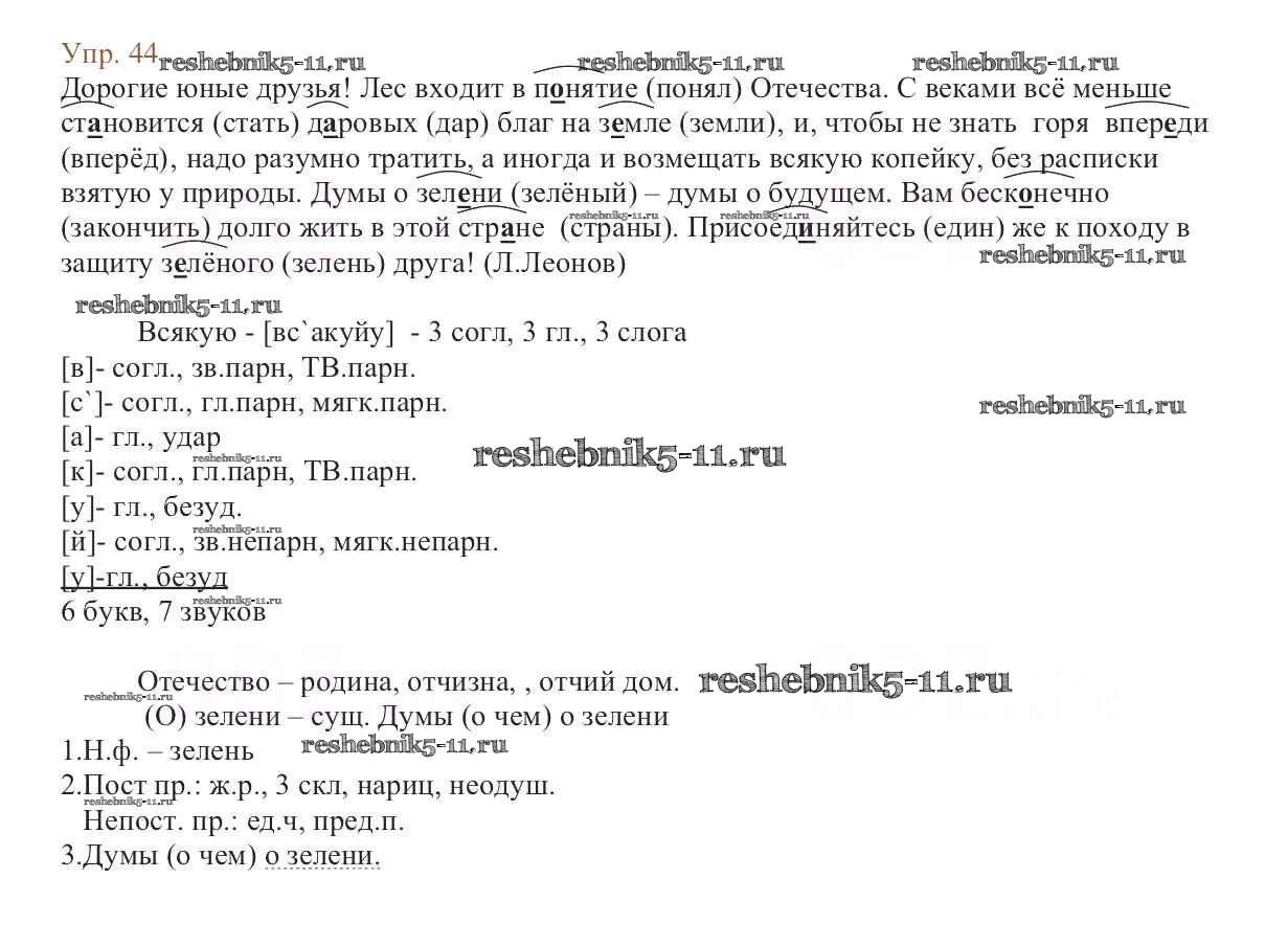 Готовая домашняя работа с ответами по Русскому языку за 6 класс Баранов, Ладыженская, Тростенцова, Григорян, Кулибаба Учебник Часть 1, 2 Просвещение 2015 ФГОС - Упражнения 44