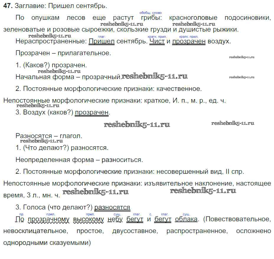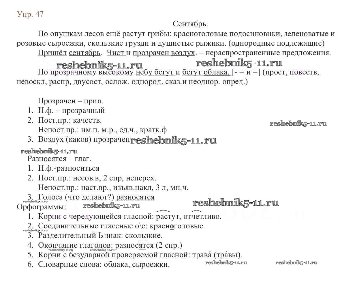 Готовая домашняя работа с ответами по Русскому языку за 6 класс Баранов, Ладыженская, Тростенцова, Григорян, Кулибаба Учебник Часть 1, 2 Просвещение 2015 ФГОС - Упражнения 47