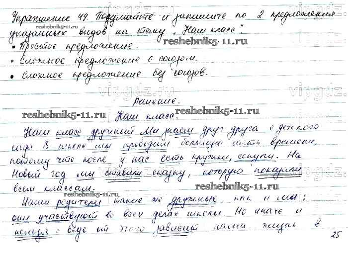Готовая домашняя работа с ответами по Русскому языку за 6 класс Баранов, Ладыженская, Тростенцова, Григорян, Кулибаба Учебник Часть 1, 2 Просвещение 2015 ФГОС - Упражнения 49