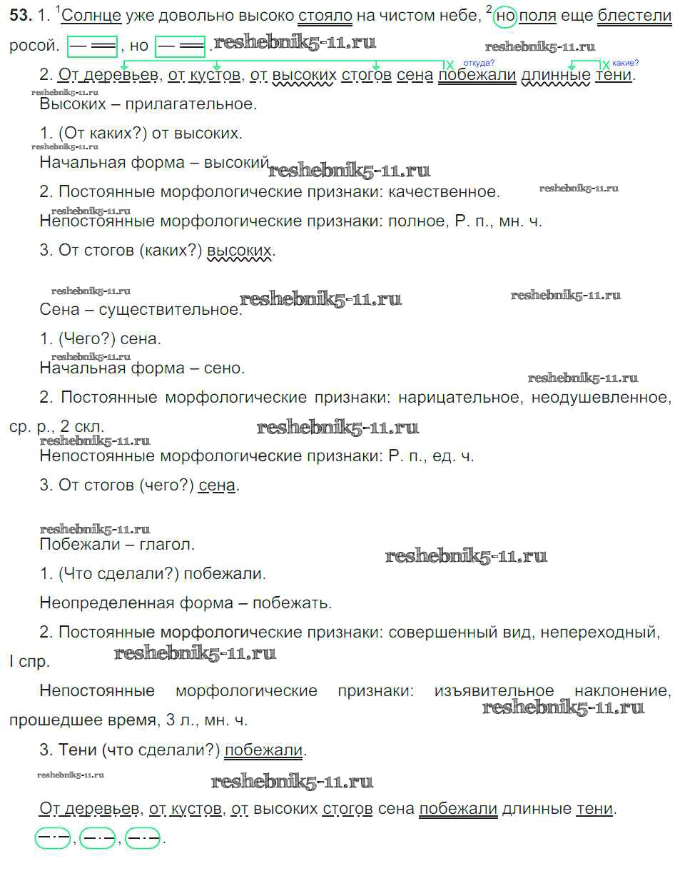 Готовая домашняя работа с ответами по Русскому языку за 6 класс Баранов, Ладыженская, Тростенцова, Григорян, Кулибаба Учебник Часть 1, 2 Просвещение 2015 ФГОС - Упражнения 53