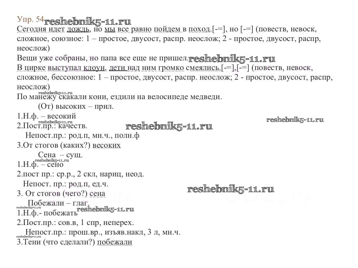 Готовая домашняя работа с ответами по Русскому языку за 6 класс Баранов, Ладыженская, Тростенцова, Григорян, Кулибаба Учебник Часть 1, 2 Просвещение 2015 ФГОС - Упражнения 54