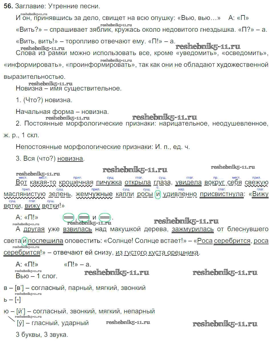 Готовая домашняя работа с ответами по Русскому языку за 6 класс Баранов, Ладыженская, Тростенцова, Григорян, Кулибаба Учебник Часть 1, 2 Просвещение 2015 ФГОС - Упражнения 56