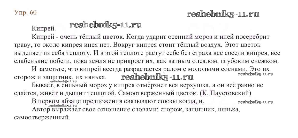 Готовая домашняя работа с ответами по Русскому языку за 6 класс Баранов, Ладыженская, Тростенцова, Григорян, Кулибаба Учебник Часть 1, 2 Просвещение 2015 ФГОС - Упражнения 60