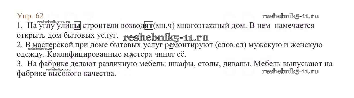 Готовая домашняя работа с ответами по Русскому языку за 6 класс Баранов, Ладыженская, Тростенцова, Григорян, Кулибаба Учебник Часть 1, 2 Просвещение 2015 ФГОС - Упражнения 62