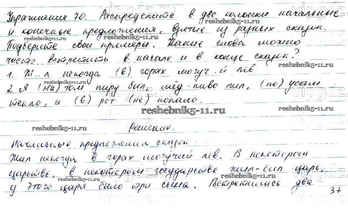Готовая домашняя работа с ответами по Русскому языку за 6 класс Баранов, Ладыженская, Тростенцова, Григорян, Кулибаба Учебник Часть 1, 2 Просвещение 2015 ФГОС - Упражнения 70