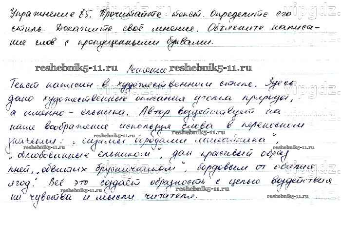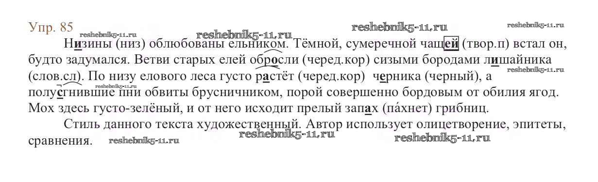 Готовая домашняя работа с ответами по Русскому языку за 6 класс Баранов, Ладыженская, Тростенцова, Григорян, Кулибаба Учебник Часть 1, 2 Просвещение 2015 ФГОС - Упражнения 85