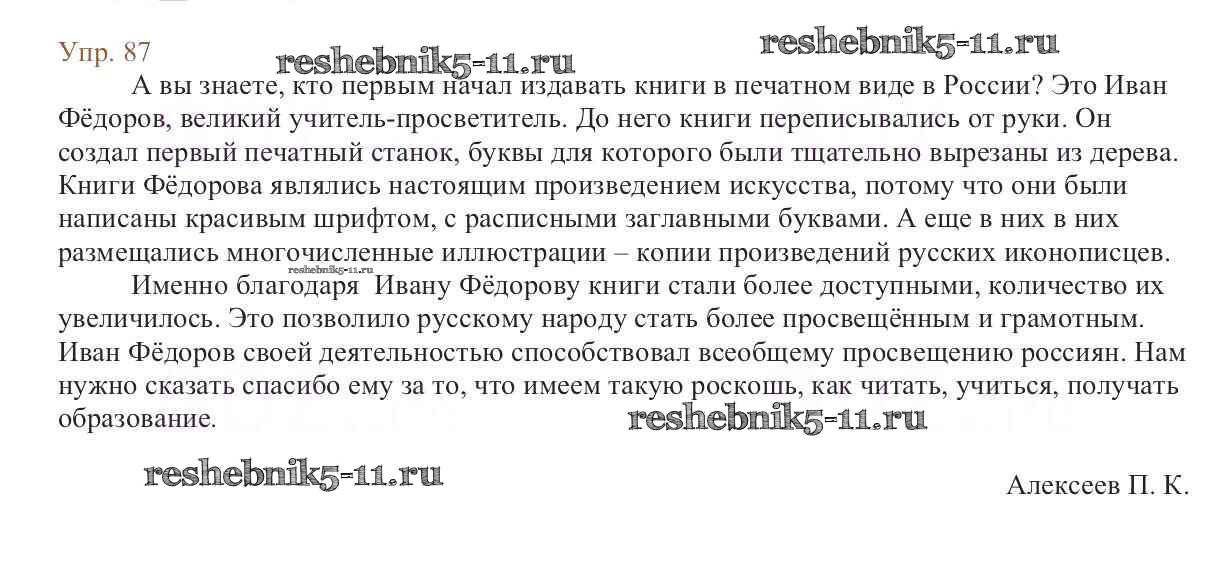 Русский язык за 6 класс Баранов Учебник Просвещение упражнение 87