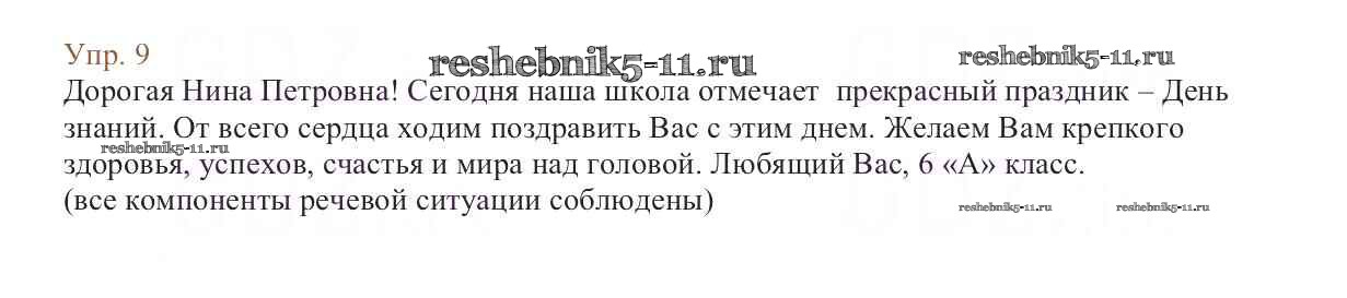 Русский язык за 6 класс Баранов Учебник Просвещение упражнение 9