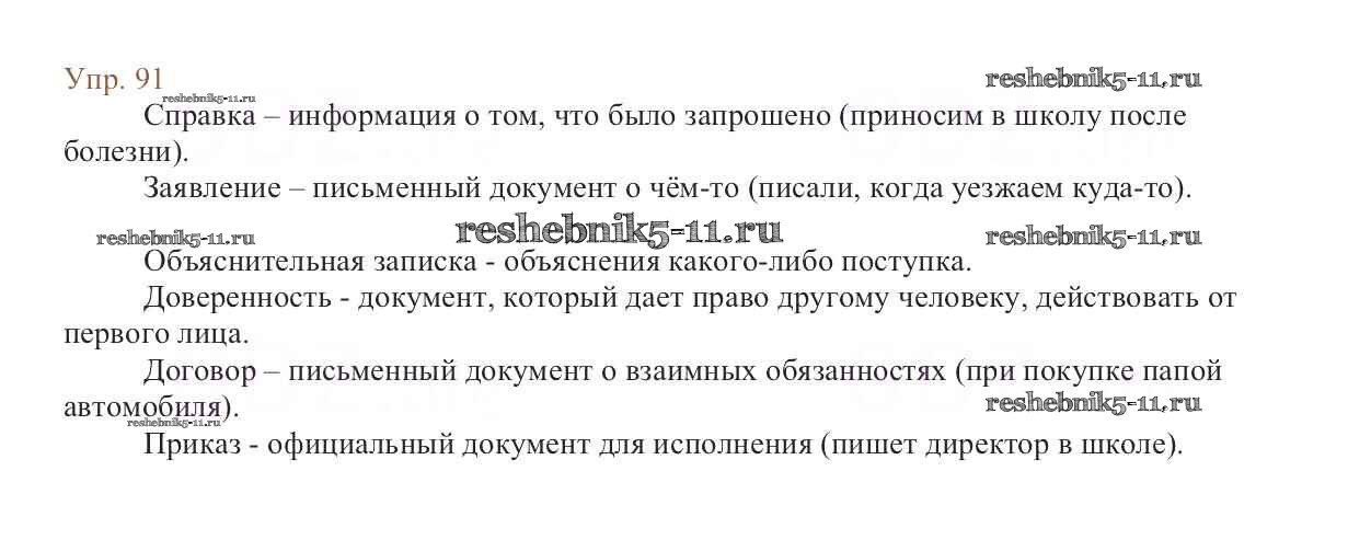 Готовая домашняя работа с ответами по Русскому языку за 6 класс Баранов, Ладыженская, Тростенцова, Григорян, Кулибаба Учебник Часть 1, 2 Просвещение 2015 ФГОС - Упражнения 91