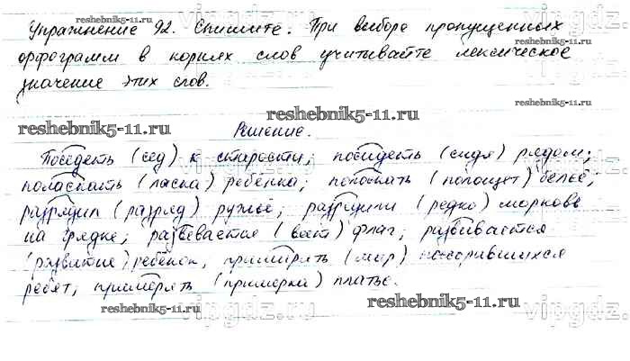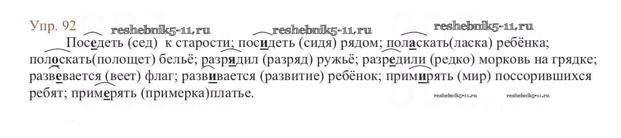 Готовая домашняя работа с ответами по Русскому языку за 6 класс Баранов, Ладыженская, Тростенцова, Григорян, Кулибаба Учебник Часть 1, 2 Просвещение 2015 ФГОС - Упражнения 92