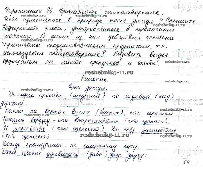 Готовая домашняя работа с ответами по Русскому языку за 6 класс Баранов, Ладыженская, Тростенцова, Григорян, Кулибаба Учебник Часть 1, 2 Просвещение 2015 ФГОС - Упражнения 96