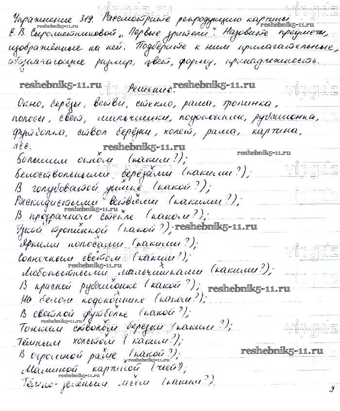 Готовая домашняя работа с ответами по Русскому языку за 6 класс Баранов, Ладыженская, Тростенцова, Григорян, Кулибаба Учебник Часть 1, 2 Просвещение 2015 ФГОС - Упражнения 319