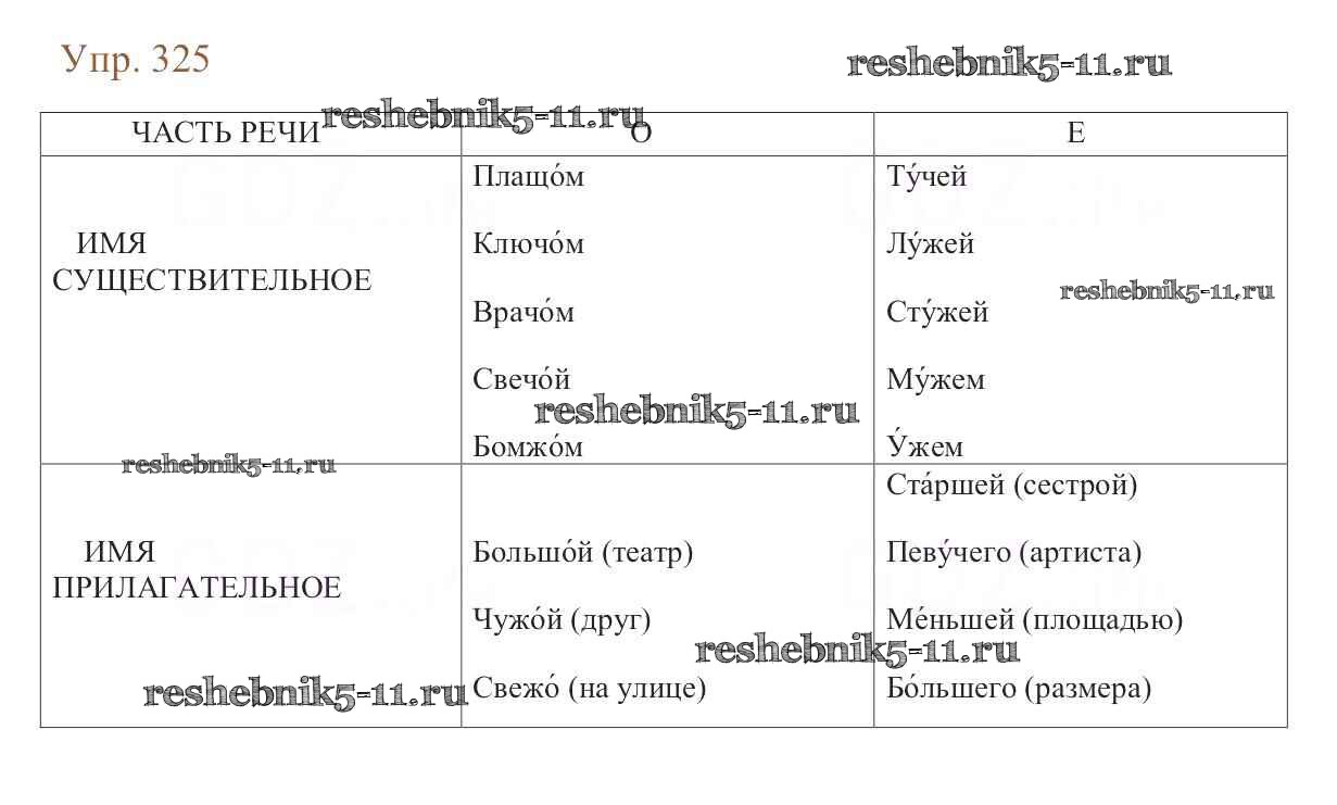 Готовая домашняя работа с ответами по Русскому языку за 6 класс Баранов, Ладыженская, Тростенцова, Григорян, Кулибаба Учебник Часть 1, 2 Просвещение 2015 ФГОС - Упражнения 325