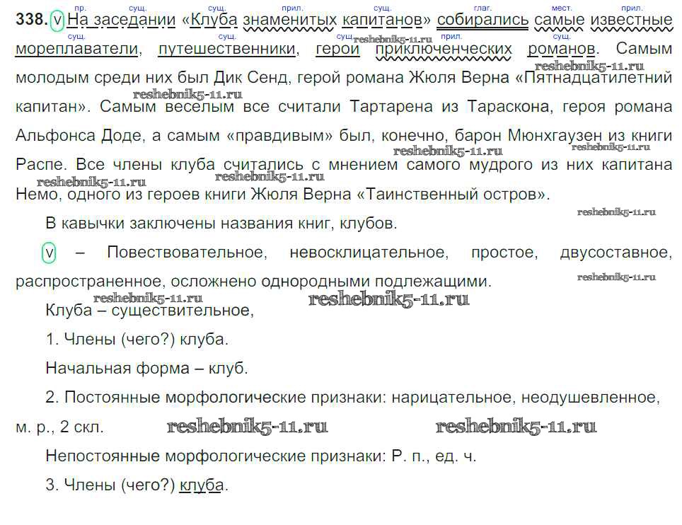 Готовая домашняя работа с ответами по Русскому языку за 6 класс Баранов, Ладыженская, Тростенцова, Григорян, Кулибаба Учебник Часть 1, 2 Просвещение 2015 ФГОС - Упражнения 338