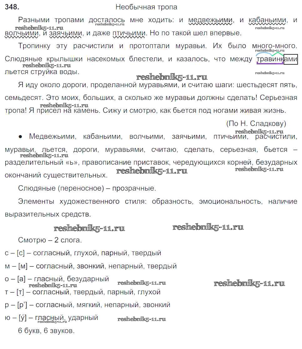 Готовая домашняя работа с ответами по Русскому языку за 6 класс Баранов, Ладыженская, Тростенцова, Григорян, Кулибаба Учебник Часть 1, 2 Просвещение 2015 ФГОС - Упражнения 348