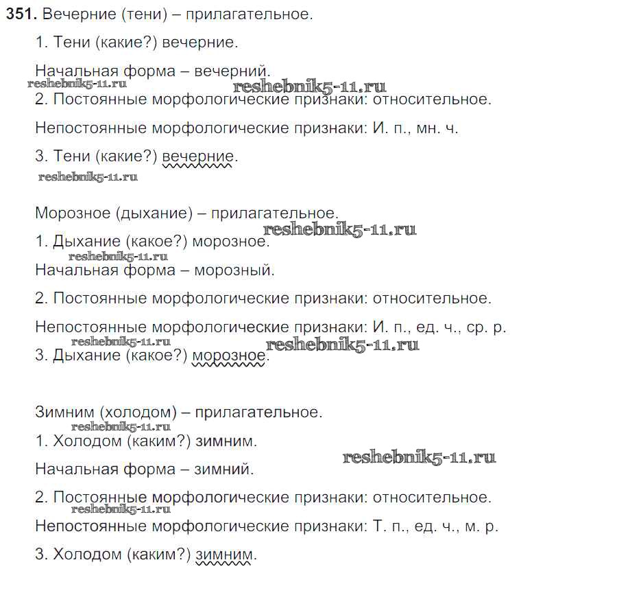 Готовая домашняя работа с ответами по Русскому языку за 6 класс Баранов, Ладыженская, Тростенцова, Григорян, Кулибаба Учебник Часть 1, 2 Просвещение 2015 ФГОС - Упражнения 351