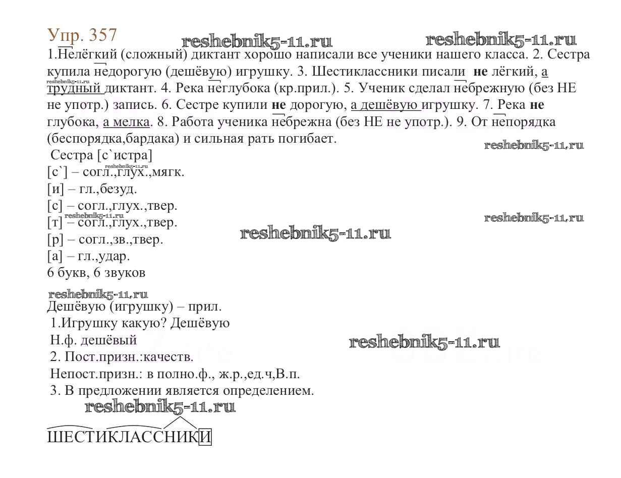 Готовая домашняя работа с ответами по Русскому языку за 6 класс Баранов, Ладыженская, Тростенцова, Григорян, Кулибаба Учебник Часть 1, 2 Просвещение 2015 ФГОС - Упражнения 357