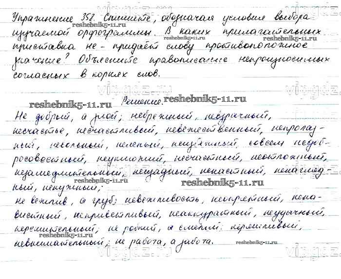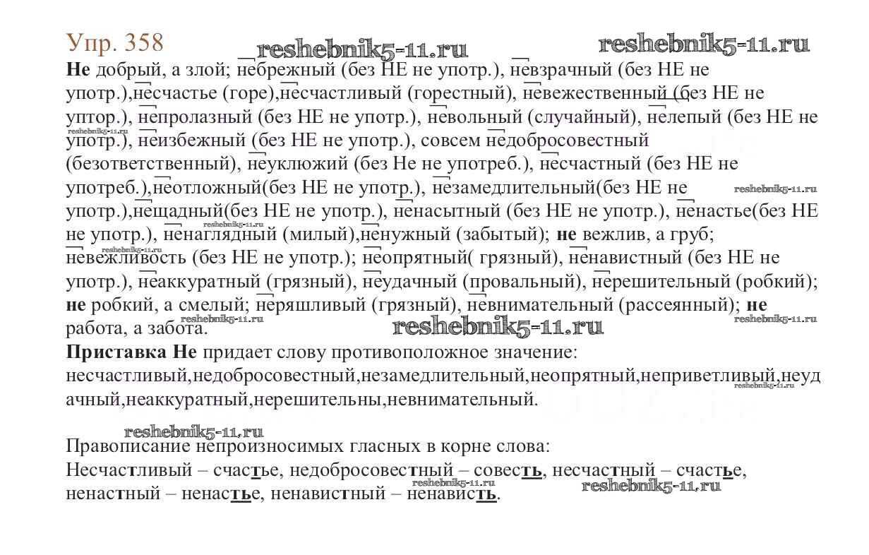 Готовая домашняя работа с ответами по Русскому языку за 6 класс Баранов, Ладыженская, Тростенцова, Григорян, Кулибаба Учебник Часть 1, 2 Просвещение 2015 ФГОС - Упражнения 358
